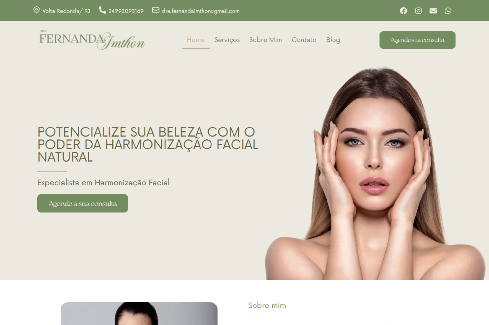 Desenvolver um site elegante e profissional para a Dra. Fernanda Imthon, especialista em harmonização facial. O objetivo era transmitir confiança e credibilidade, destacando o foco em resultados naturais e personalizados. Além disso, o objetivo era facilitar o contato com os pacientes e fornecer informações claras sobre seus serviços.