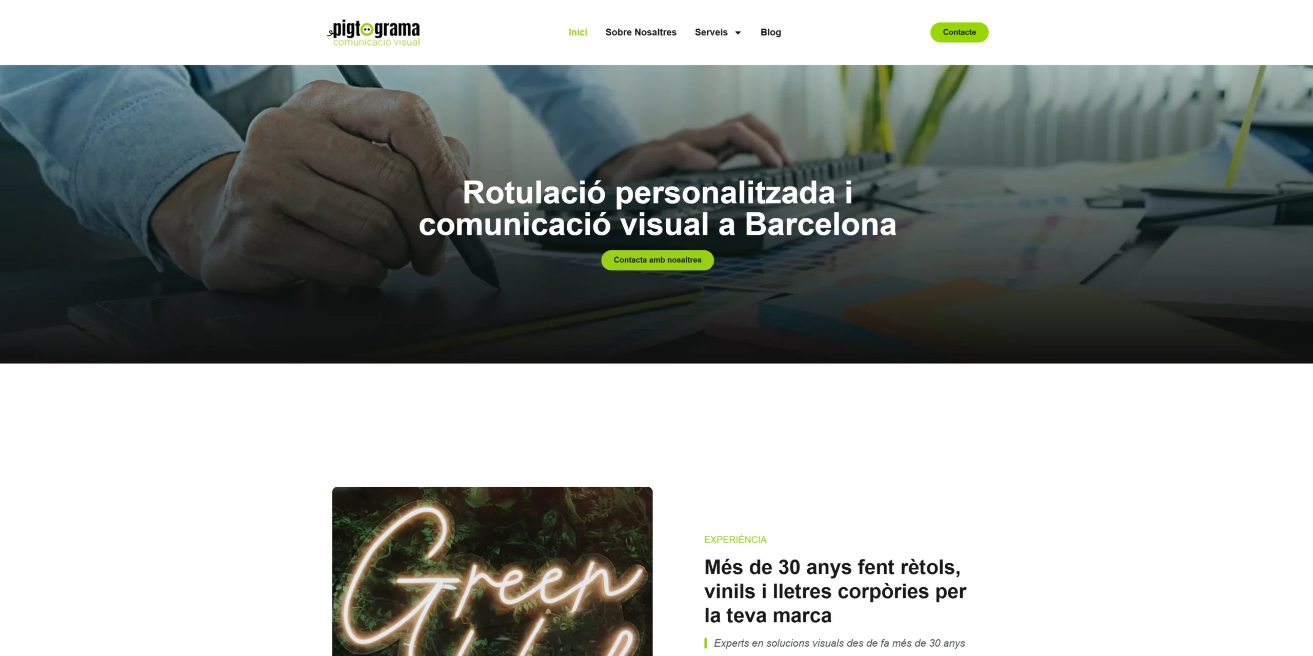 Desenvolvimos o site institucional da PIGTOGRAMA, uma empresa especializada em rotulagem personalizada e comunicação visual localizada em Barcelona. O principal objetivo foi criar um site moderno, organizado e visualmente atrativo, que apresentasse os serviços da marca de forma clara e profissional.